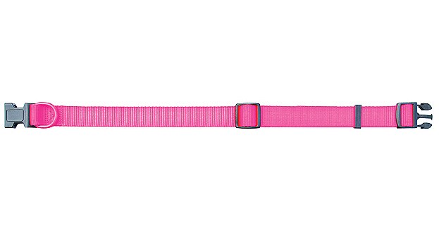 This Nylon collar is fully adjustable to allow for a comfortable fit. Has a sturdy clip closure which allows for easy and convenient use and a D-ring for attaching your lead and ID tag.