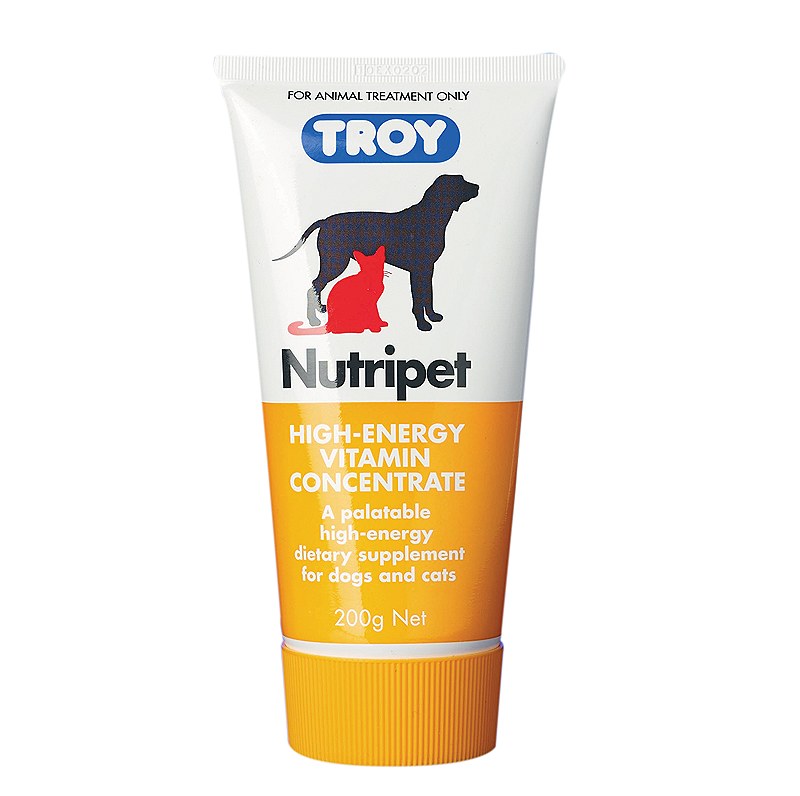 Troy Nutripet 200g is designed for dogs and cats that need a little help ensuring they're getting enough vitamins and essential nutrients in their diet. The high energy vitamin concentrate from Troy Nutripet 200g provides an added boost of essential nourishment to supplement a balanced diet for your dog and cat. The Troy Nutripet 200g contains a combination of vitamins crucial for healthy development, along with added calcium, magnesium and proteins required to keep your furry friend at their best. Can be used on your furry friend recovering from an operation or injury where they require some help as an appetite stimulant.
